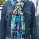 Our soft acrylic winter scarf can be embroidered with a monogram or personalized with an initial or name. Our scarf has the soft feel of cashmere without the cost. Each monogrammed scarf measure approximately 72 inches long x 12 inches wide. Choose from 38 scarf colors, 41 different font styles and endless thread colors. Personalized your scarf with a monogram, name or letter.